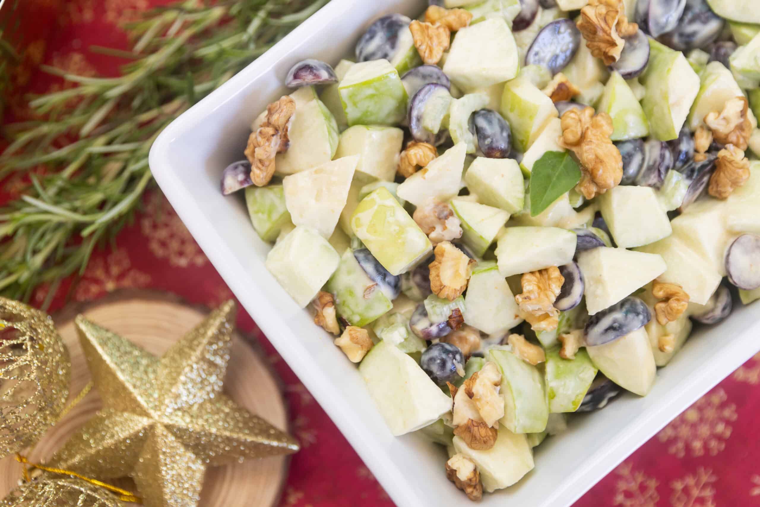 Mix de folhas, maçã, nozes, aipo e molho suave de gorgonzola (porção de 1kg).
